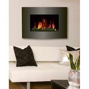This HomeTech Contemporary Wall-Mount Electric Fireplace blends style and convenience beautifully. A black curved tempered glass front panel adds class to any decor and the remote control provides fingertip control from across the room. Volts: 120, Watts: 1,500, Heat Settings: 750 / 1,500 Watts, Thermostat Included: No, Power Cord (ft.): 6, Mantel Color: Black, Remote Included: Yes, Flame Dimmer Switch: Yes, Log Set Included: Yes, Dimensions L x W x H (in.): 34.8 x 6 x 22